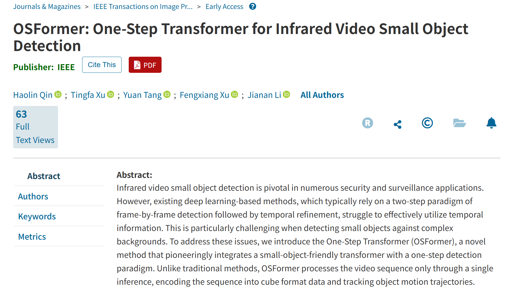 北理工beat365英国官网网站许廷发教授团队在红外弱小集群目标检测领域取得新突破
